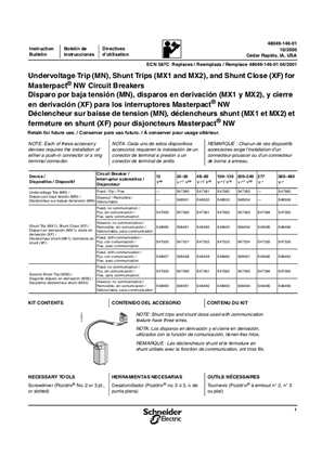 Undervoltage Trip Mn Shunt Trips Mx1 And Mx2 And Shunt Close Xf For Masterpact Nw Circuit Breakers Installation Instruction Sheet Schneider Electric Usa